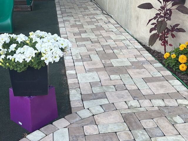 Представлены фото объекта с продукцией от ПК Цитадель: РИМСКИЙ БРУК (ЕВРОПА) кладка тротуарных дорожек или площадок перед зданиями. Наша плитка/брусчатка отвечают всем техническим правилам, а также конструкторским и технологическим требованиям, утвержденным в установленном порядке.